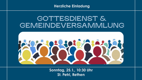 Der Kirchenvorstand der Gesamtkirchengemeinde Laatzen beruft für den 25. Januar 2026 eine Gemeindeversammlung ein. Es wird einen Bericht über die Arbeit des Kirchenvorstands im letzten Jahr geben ebenso wie einen Ausblick auf anstehende Themen und Entwicklungen. Ein Schwerpunkt der Versammlung wird das Thema Zukunft der kirchlichen Gebäude in Laatzen sein. Der Gottesdienst am 25. Januar für alle Laatzener Ortskirchengemeinden beginnt um 10.30 Uhr in der St. Petri Kirche in Rethen. Nach einer kurzen Pause, in der sich die Anwesenden mit einem Getränk und einem Snack versorgen können, schließt sich direkt die Gemeindeversammlung an, die einen Zeitrahmen von etwa eineinhalb Stunden haben wird. Wir freuen uns über eine rege Teilnahme aus allen Ortskirchengemeinden.