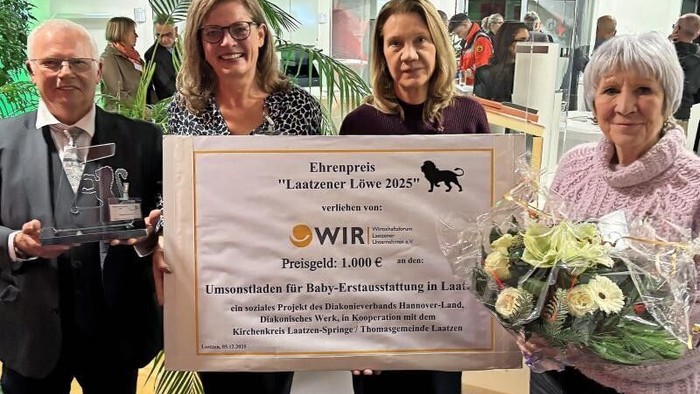Der Umsonstladen für Babyerstausstattung ist mit dem Laatzener Löwen 2025 des Wirtschaftsforums Laatzener Unternehmer (wir) ausgezeichnet worden. Die Ehrung wird alle zwei Jahre vergeben und ist mit einem Preisgeld von 1.000 Euro verbunden.