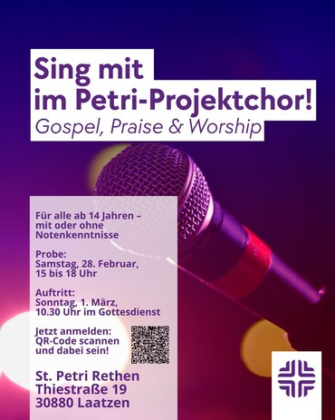 Du hast Lust zu singen und möchtest Teil eines besonderen musikalischen Projekts sein? Dann bist du im Petri-Projektchor genau richtig! Gemeinsam mit Lars Wellbrock studieren wir mehrstimmige Songs aus Gospel und Praise & Worship ein – mitreißend, emotional und spirituell.