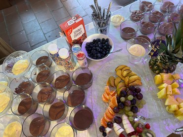 Im Café Exposé wartete schon eine gedeckte Tafel mit leckerem Essen auf alle. Bei den Kindern kam besonders der Nachtisch und die Wunsch-Toppings gut an. Dass in der Küche der Strom ausgefallen war und es deshalb keine Nudeln oder Reis gab, fiel gar nicht ins Gewicht.